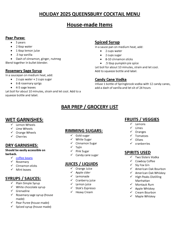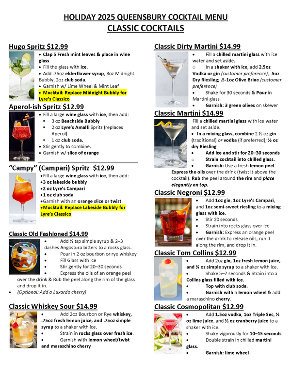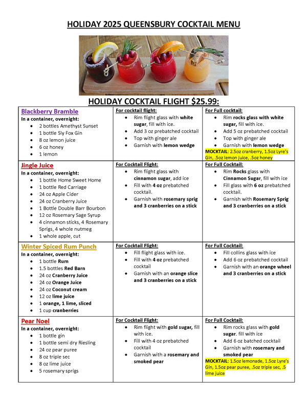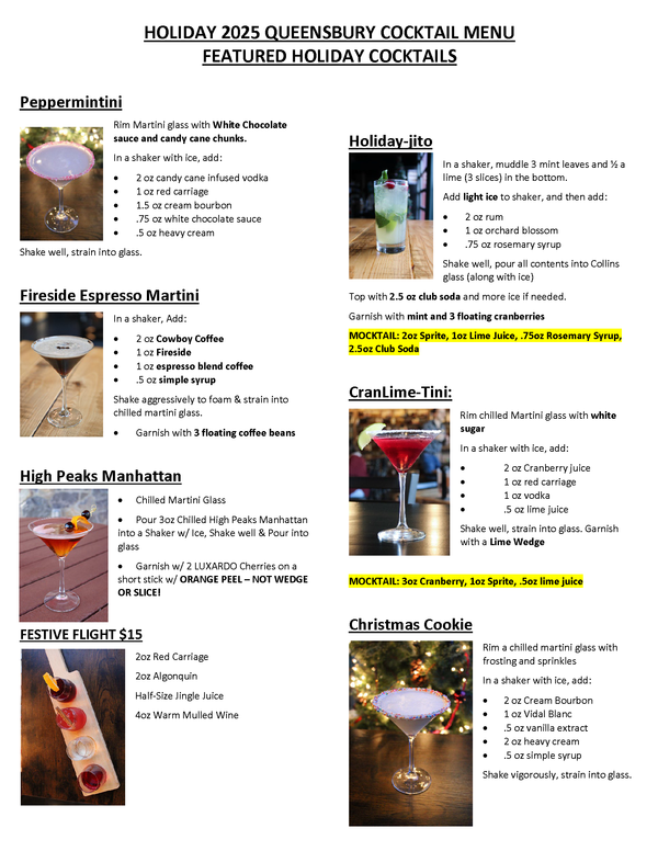 Come visit us at the Restobar at our Queensbury Tasting Room to enjoy these holiday cocktails and so much more, from games and activities like Trivia, Music Bingo, and Family Feud, to live music entertainment. See our full menu, drinks, food, and all, and be sure to follow all of the fun events we have coming up: you can sign up for them here! Whether you come for a bite, a drink, or a night out with friends, the Restobar is all about relaxing, connecting, and enjoying the moment.